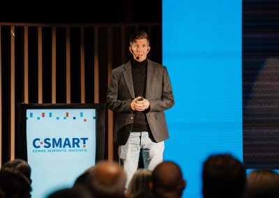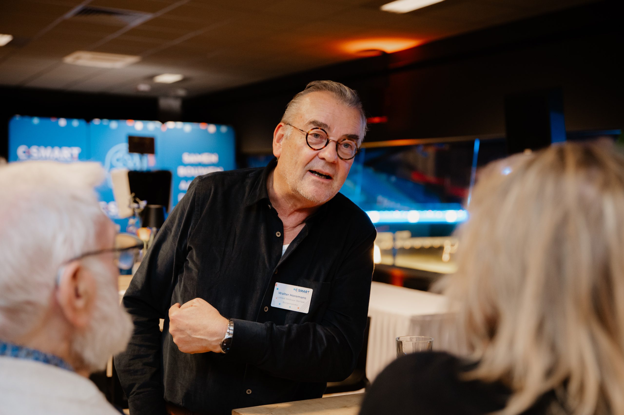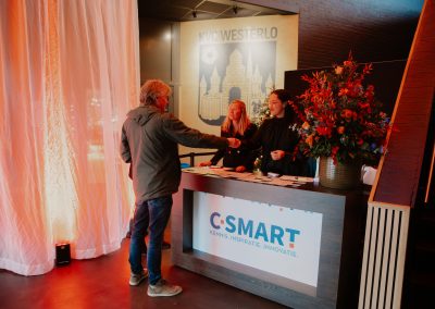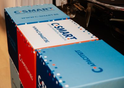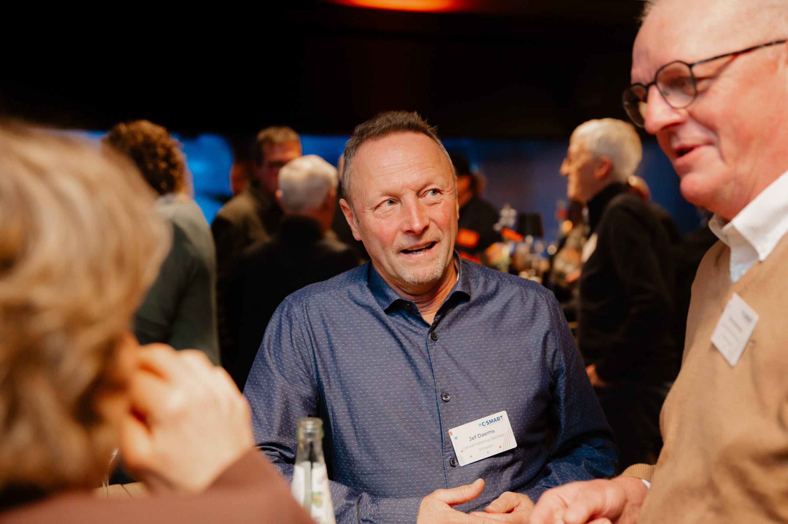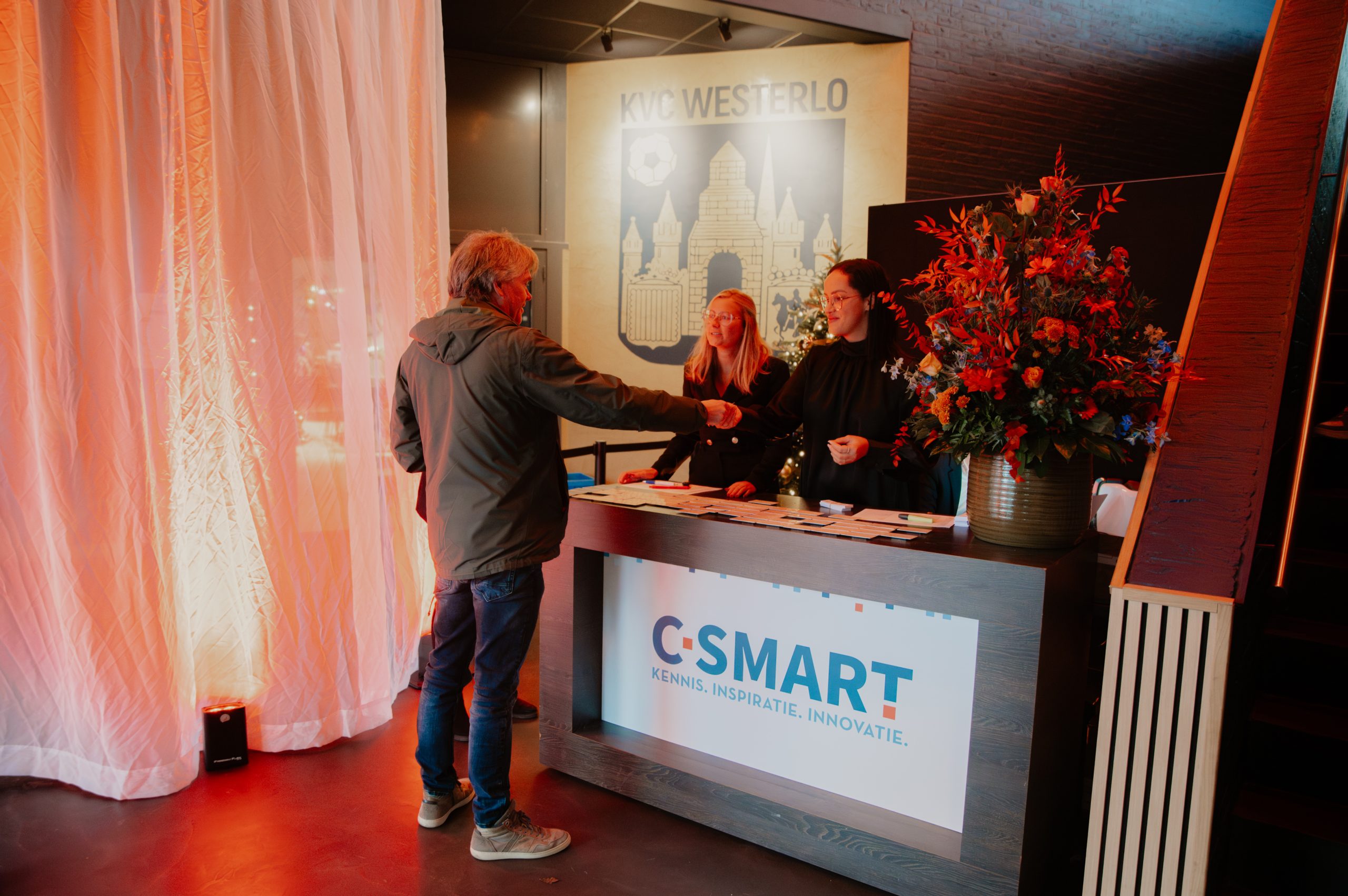 Bij het binnenkomen werd aan de deelnemers toestemming gevraagd voor het maken en publiceren van foto’s. Sta je toch op een foto die je liever niet online ziet, of heb je een vraag over het gebruik van beeldmateriaal? Laat het ons weten via info@c-smart.be, we volgen dit graag op.